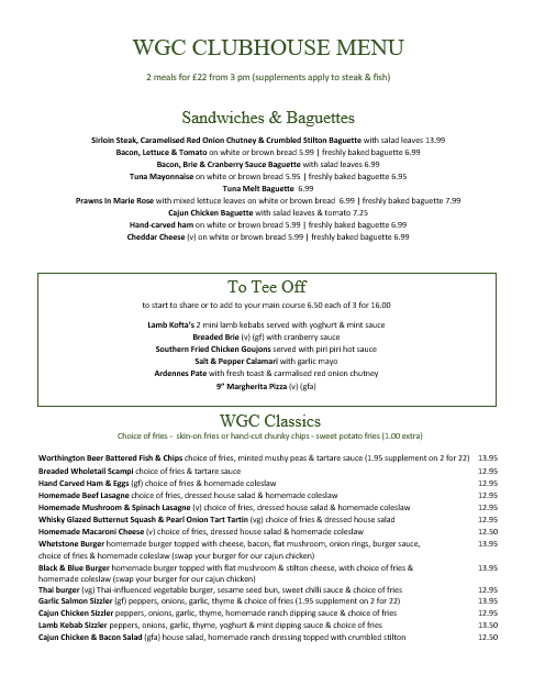 • Clubhouse Menu